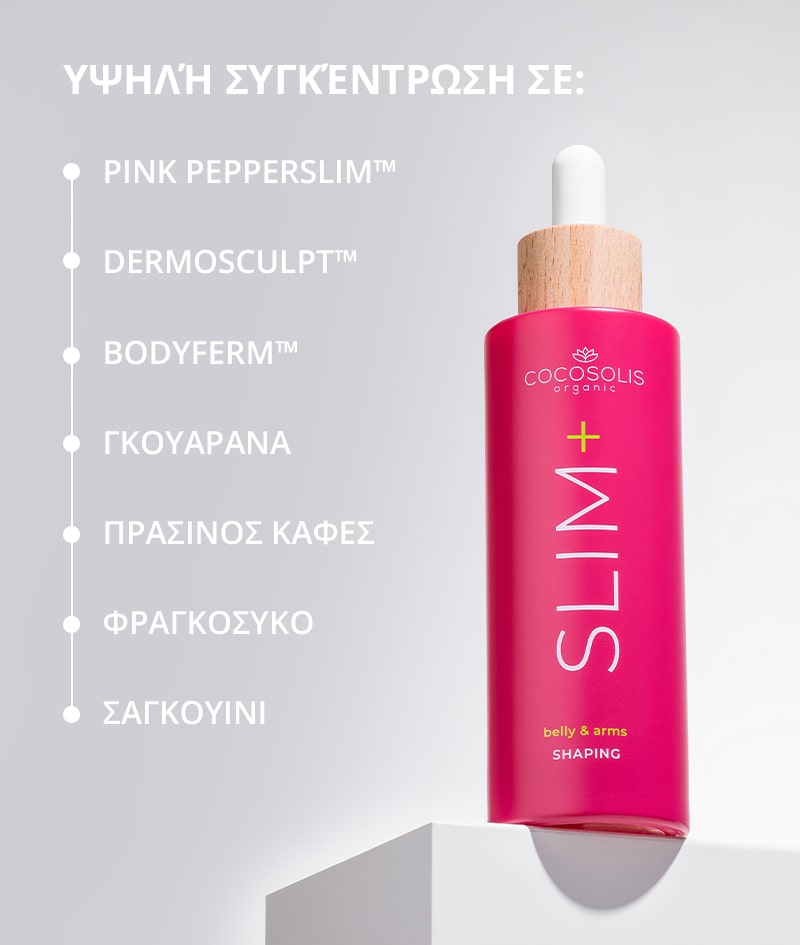 Το Cocosolis Slim+ Shaping Serum 100ml είναι ένας συμπυκνωμένος ορός σώματος που έχει σχεδιαστεί για σύσφιξη, λιπόλυση και σμίλευση σε στοχευμένες περιοχές όπως κοιλιά και μπράτσα. Περιέχει 9 φυσικά συστατικά με κλινική αποδεδειγμένη δράση που επιτίθενται στο λίπος και συσφίγγουν το δέρμα. Προσφέρει μεταμορφωτικό αποτέλεσμα, μειώνοντας την περιφέρεια και σμιλεύοντας την επιδερμίδα, ενώ παράλληλα αυξάνει την ελαστικότητα και βοηθά στην πρόληψη ραγάδων. Με άρωμα κόκκινο πορτοκάλι, χαρίζει ορατά αποτελέσματα μετά από περίπου έναν μήνα χρήσης.