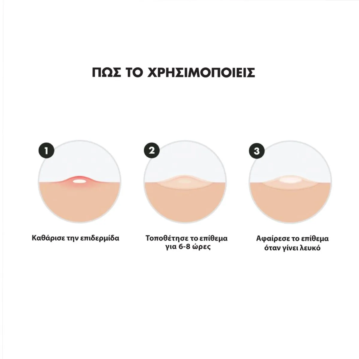 Τα επιθέματα είναι εξαιρετικά λεπτά, διάφανα και ταιριάζουν με τον τόνο της επιδερμίδας, ώστε να μπορούν να φορεθούν τόσο κατά τη διάρκεια της νύχτας όσο και μέσα στην ημέρα. Δεν περιέχουν φαρμακευτικά συστατικά, άρωμα ή ερεθιστικούς παράγοντες, γεγονός που τα καθιστά κατάλληλα για όλους τους τύπους δέρματος, συμπεριλαμβανομένου του ευαίσθητου. Η εφαρμογή τους είναι απλή: τοποθετούνται σε καθαρό και στεγνό δέρμα απευθείας πάνω στο σπυράκι και αφαιρούνται όταν το επίθεμα γίνει λευκό, ένδειξη ότι έχει απορροφήσει τα υγρά.